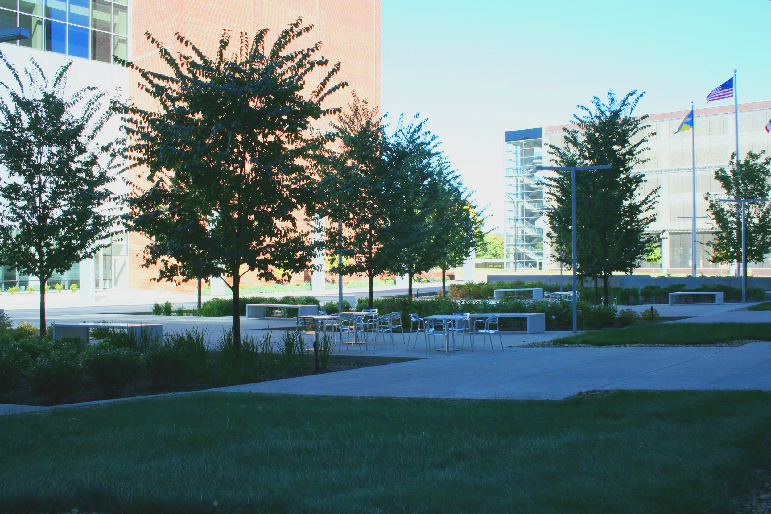 The site design balances Goodyear’s desire for a high-end entry plaza and employee patio while providing security and fire access.